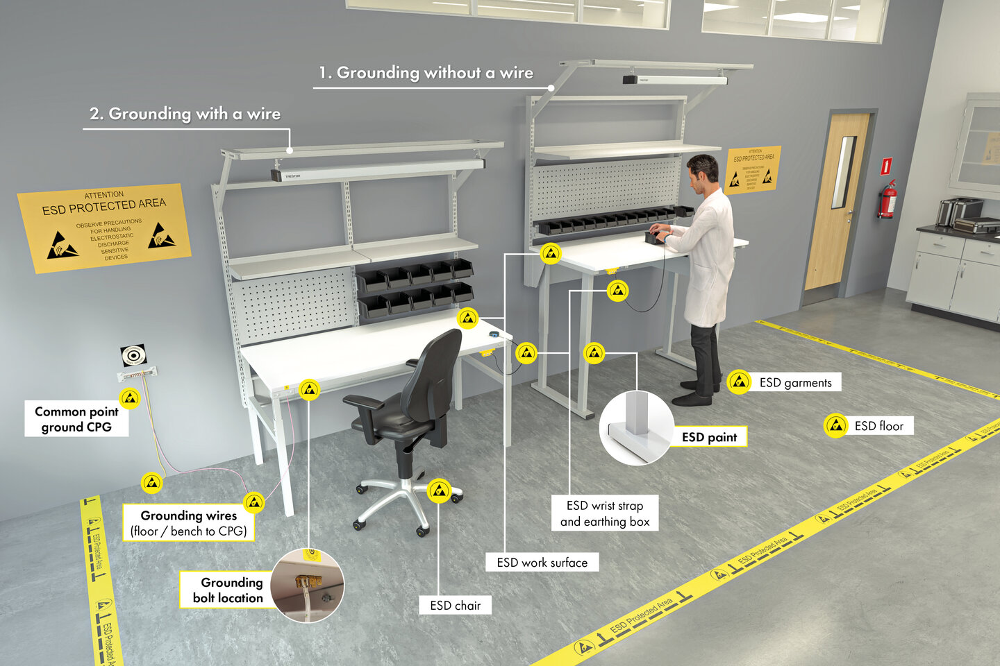 Grounding options in our standard workstations - a smart starting point for tailored ESD workstation solutions