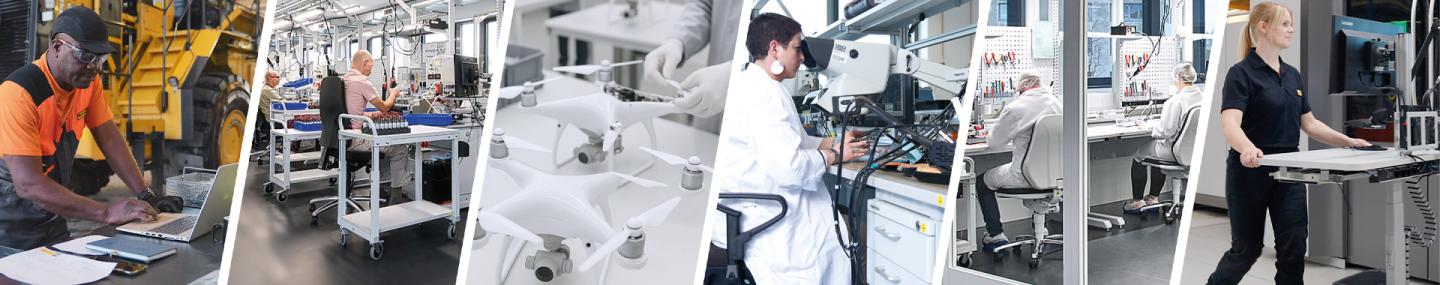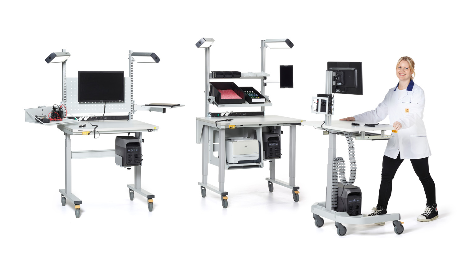 Mobility and ergonomic features such as height adjustability, rounded corners and low-glare matt surfaces further help improve operator comfort, concentration and productivity. A good example is Treston PowerX, a mobile and power-independent workstation range.