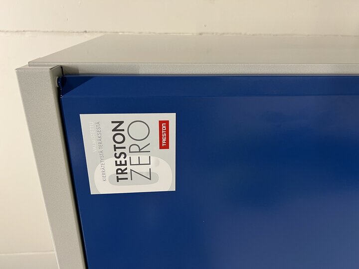 The biggest difference compared to Treston’s standard industrial cabinets is the material: the frame is made of SSAB Zero™ steel, produced from recycled steel using fossil-free electricity and biogas. The fossil-based emissions from the steel production are less than 0.05 kg CO₂e per kilogram of steel (Scope 1 and 2, GHG Protocol).