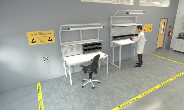 For small areas, grounded ESD mats are practical; for large/new facilities, consider a cast ESD floor. Always ground to a common point ground (CPG) and clearly mark EPAs.