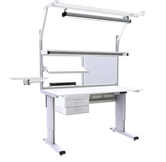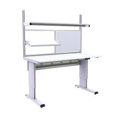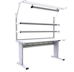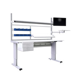 Treston WB workbenches are particularly suitable for use in the electronics industry. The worktop can be steplessly adjusted, with either an electric motor, a hand crank, or an Allen key. Above workbench modules and a wide range of accessories and add-ons enable putting together a highly ergonomic workstation. The workbenches in this product family can be positioned seamlessly side-by-side, back-to-back, or against a wall in various different layouts.